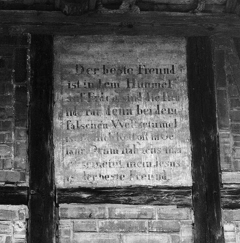 An den straßenseitigen Mauern der Wirtschaftsgebäude des Hofes Nr. 18 befinden sich in den Ausfachungen des Obergeschosses in den Verputz eingelegte Medaillons und Blumenmotive, die vermutlich aus dem ersten Drittel des 19. Jhs. stammen. Als hervorzuhebendes Sachteil ist der Gebäudeschmuck aus geschichtlichen Gründen schützenswert.
