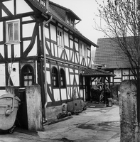 Das in das Jahr 1768 datierte Wohnhaus mit Längsanbau und Scheune aus dem 19. Jh. erhebt sich in einem lebhaften Fachwerkgerüst mit Mannfiguren an Eck- und Zwischenständern. Die Eckständer sind mit einem Säulenmotiv versehen. Die Toreinfassungen tragen eine Datierung aus dem Jahr 1899.