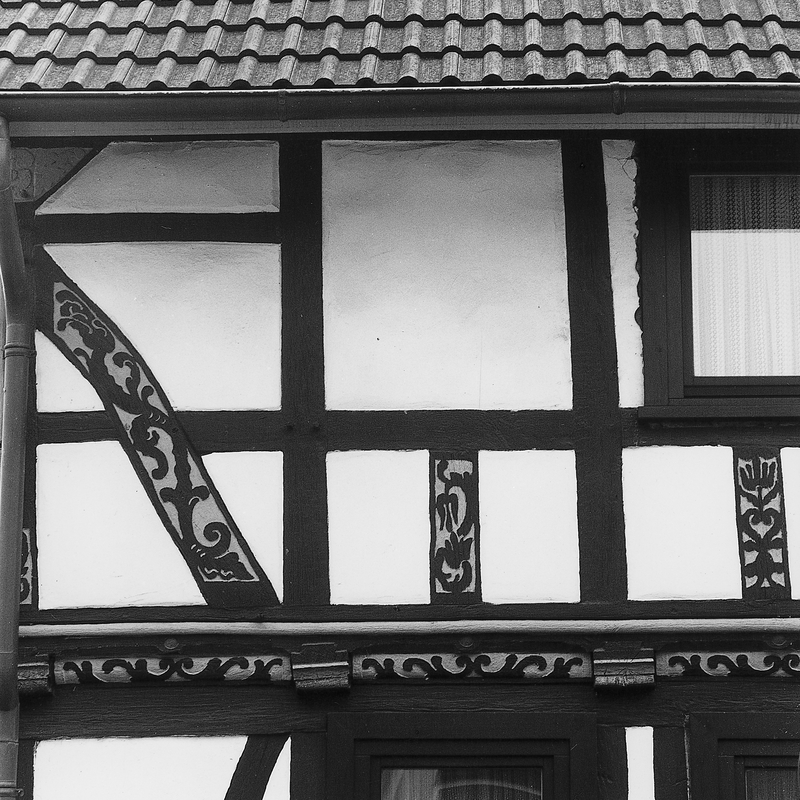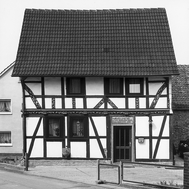 In spitzwinkliger Lage zur Straßenflucht erbautes Wohnhaus aus der zweiten Hälfte des 18. Jhs. mit jüngeren Ergänzungen. Im traufseitigen Schwellenbereich zwischen den profilierten Balkenköpfen Flachschnitzdekor, an den Eckständern eingelegter Rundstab. Auf Grund der Straßen schließenden Lage und den reichen Schmuckformen ist das Gebäude aus städtebaulichen und ortsgeschichtlichen Gründen erhaltenswert.