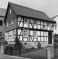 Fachwerkhaus im Kern aus der ersten Hälfte des 17. Jhs. mit einem jüngeren Vorbau über hohem Sandsteinsockel in konstruktivem Gerüstraster aus 3/4-Streben und Stockwerkstreben.Auf Grund des frühen Baudatums ist das Haus aus geschichtlichen Gründen schützenswert.