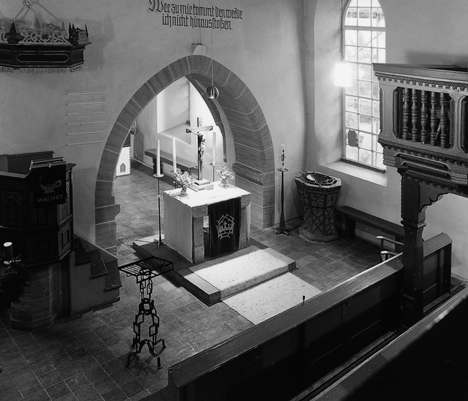 Als Ausstattungsgegenstände sind das Taufbecken von 1634 sowie die um 1769 erbaute Orgel von Schmerbach als erhaltenswertes Inventar aufzulisten.