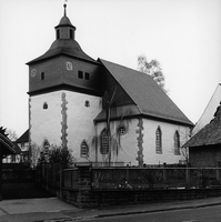 Evangelische Pfarrkirche mit gotischem Kern, 1634 im Norden erweitert, so dass der ursprüngliche Chor heute nicht mehr in der Mittelachse des Baues liegt. Das äußere Erscheinungsbild der im Ortskern befindlichen Kirche wird im Wesentlichen durch den mächtigen Chorturm geprägt, der in das Satteldach des Langhauses einschneidet. Das Innere hingegen überrascht durch die reiche Ausstattung mit einer Empore, die in der Durchbildung der Schmuckformen derjenigen in der Germeröder Klosterkirche gleicht. Der Chorraum wird in einem spitzbogigen Triumphbogen geöffnet, die Rippen des dortigen Kreuzgewölbes setzen über Konsolen an.