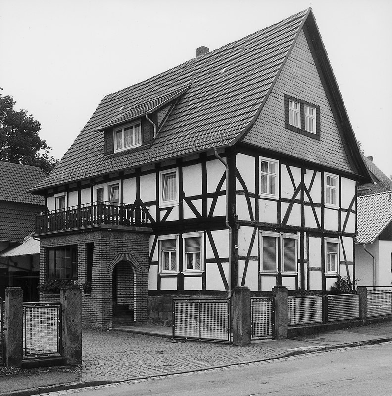 Wohnhaus einer Hofanlage mit giebelseitiger K-Verstrebung im Obergeschoss und 3/4-Streben mit Brustriegeln an den Eckständern. Da das Gebäude in den letzten Jahren des 18. Jhs. erbaut wurde, gehört es zu der älteren erhaltenen Bausubstanz des Dorfes und ist daher aus geschichtlichen Gründen schützenswert.
