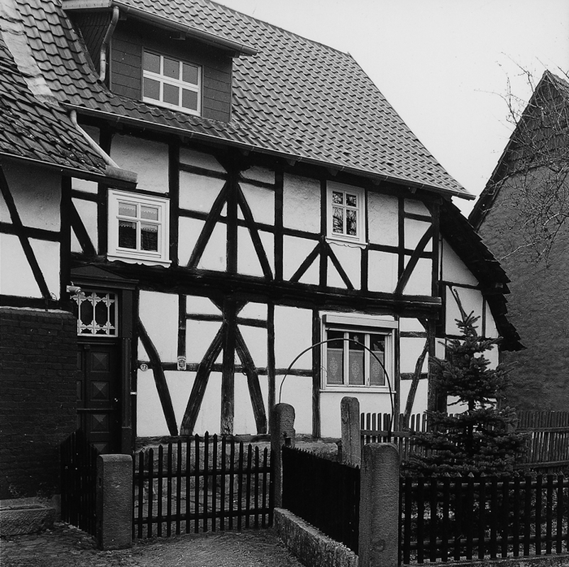 Um 1780 erbauter kleindimensionierter Wohn-Wirtschaftstrakt in ortsbildprägender Lage, direkt der Pfarrkirche angeschlossen. An den Eck- und Bundständern beider Geschosse verfestigen Mannfiguren mit Hals- und Brustriegeln das Fachwerkgefüge.