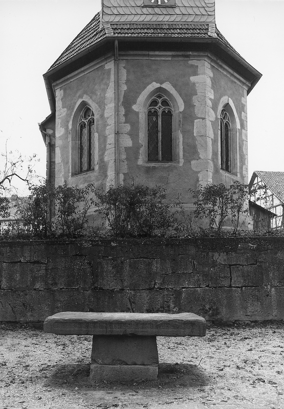 Unterhalb des Chores befindet sich d r Anger des Ortes mit einem erhaltenen Steintisch und Resten der Ummauerung.