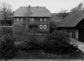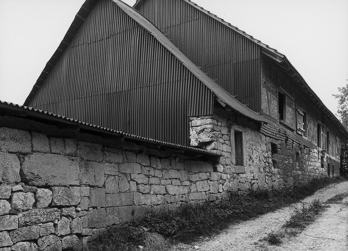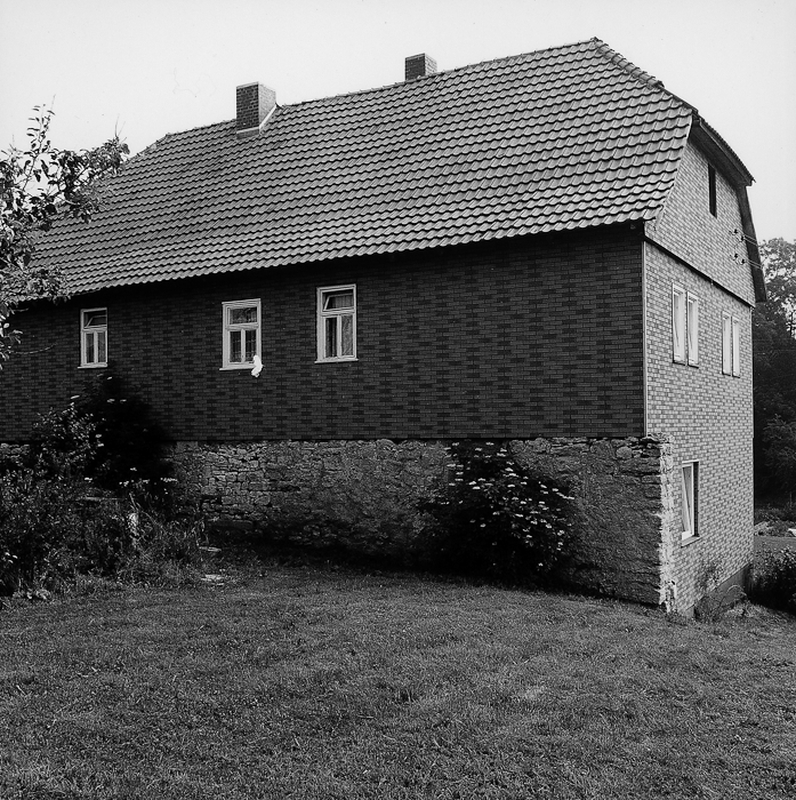Ehemaliger Adelssitz der Treusch von Buttlar, bestehend aus einem Wohnhaus in zwei Geschossen mit abschließendem Krüppelwalmdach sowie einer rechtwinklig angeschlossenen Scheune. Das aus der ersten Hälfte des 18. Jhs. stammende Wohnhaus ist bis auf das Erdgeschoss der Nordseite vollständig mit Strukturpappe verkleidet. Scheune in massivem Untergeschoss aus Sandstein mit darüber aufsitzendem Fachwerkgefüge mit Backsteinausfachung. Im Winkel zwischen Wohnhaus und Scheune sind die Reste von Fundamenten eines weiteren Wirtschaftsgebäudes erhalten.