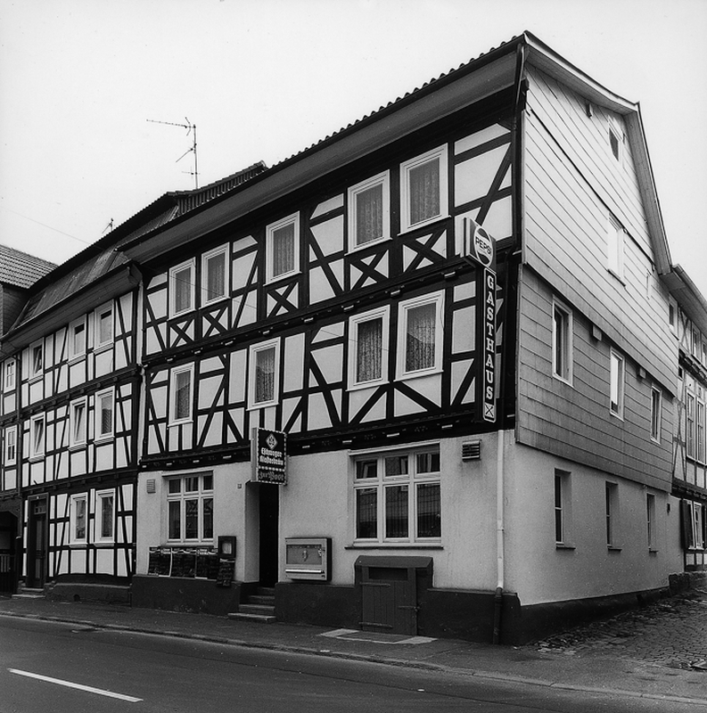 Das um 1830 erbaute Wohnhaus erhebt sich in konstruktiver Fachwerkgestaltung mit Stockwerkstreben, Sturz- und Brustriegeln in drei Geschossen. Erhalten ist die Eingangstür aus der Erbauungszeit.