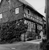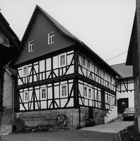 Giebelständiges Wohnhaus in zwei Geschossen über hohem, massivem Sockel mit lebhafter Fachwerkkonfiguration an dem traufseitig ausgebildeten Geschossüberstand: dort an Eck- und Bundständern 3/4-Streben mit Brust- und Sturzriegeln, dazwischen konvergierende Fußstreben im Brüstungsbereich. Das Erscheinungsbild des Gebäudes erlaubt eine Datierung um 1780.