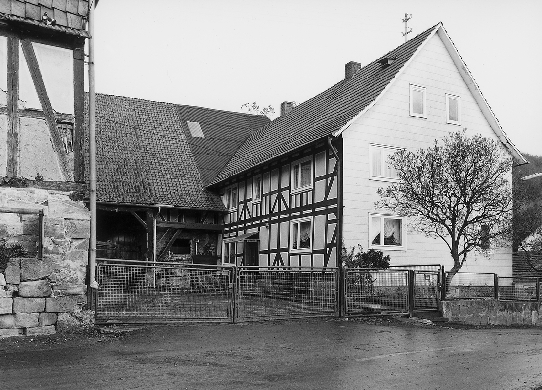 Stattliche dreiseitige Hofanlage aus dem 18./19. Jh. an markanter Stelle am Beginn des Straßenzuges über einer Ecklage. Das Wohnhaus erhebt sich über einem hohen Sockel in konstruktiver Fachwerkkonfiguration mit straßenseitiger Schaufassade. Scheune und Stallungen ebenfalls in regelmäßiger Fachwerkkonstruktion. Als einziger Hof des Dorfes mit erhaltenen Wirtschaftsgebäuden aus der Erbauungszeit ist das Ensemble aus geschichtlichen und städtebaulichen Erwägungen schützenswert.