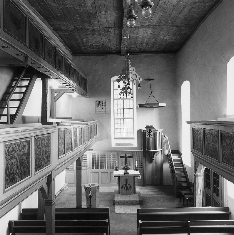 Besonders bemerkenswert sind die im Turmuntergeschoss aufgereihten Grabsteine aus dem 18. Jh. mit zum Teil figürlichen Darstellungen, die die Vergänglichkeit des Lebens thematisieren. Vor der Kirche befinden sich Grabsteine