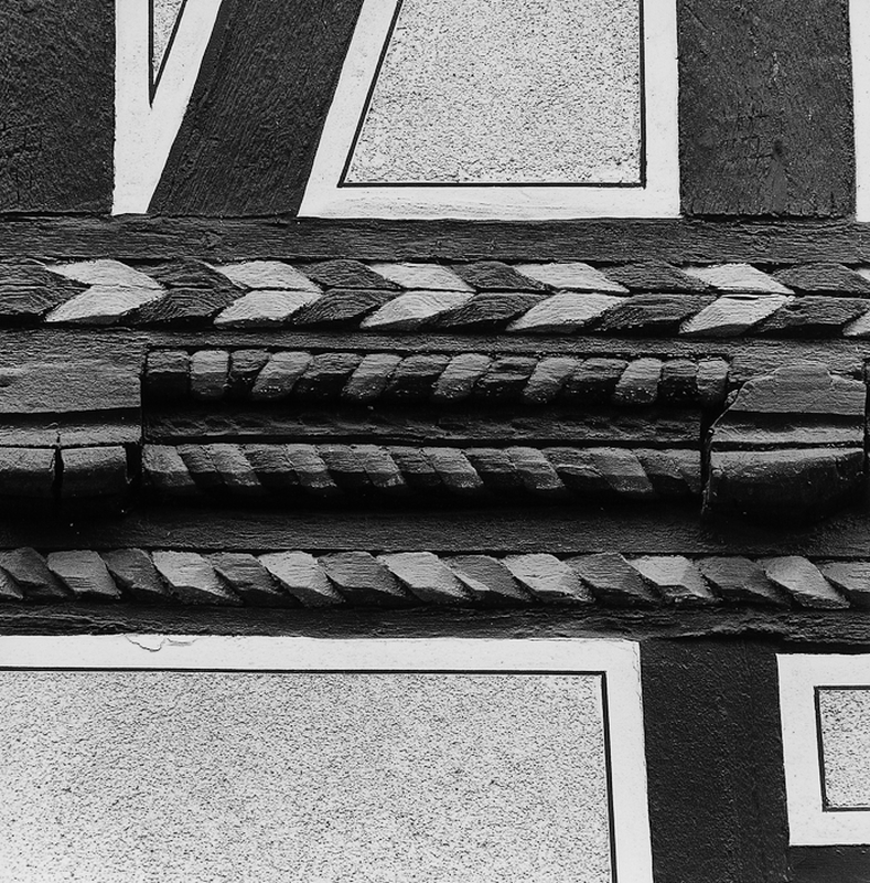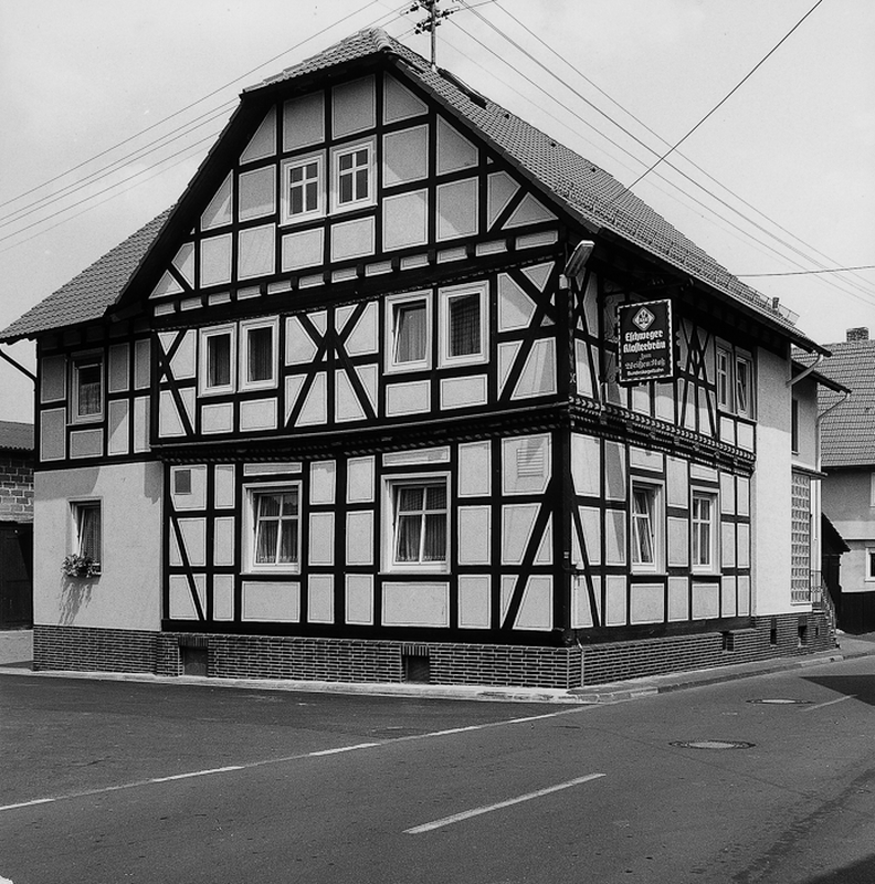 Repräsentatives Wirtshaus aus dem Ende des 16. Jhs. an der Ecklage zur Mühlgasse mit interessanter Fachwerkkonfiguration im Obergeschoss. Dort an den Eck- und Bundständern Mannfiguren mit überblatteten Kopf- und Fußstreben. Am reich profilierten Schwellenbereich breite Zopf- und Taubänder. Das Erdgeschoss wurde in konstruktivem Fachwerkgefüge erneuert.