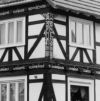 Gut erhaltene, dreiseitig umbaute Hofanlage mit repräsentativem Wohnhaus und stattlichen Wirtschaftsgebäuden. Das um 1700 erbaute Wohnhaus zeigt ein ähnliches Fachwerkgefüge wie das benachbarte Haus Nr. 44 mit den besonders markanten Mannfiguren an den Eckständern des Obergeschosses. Dort sowie an den Füllhölzern reich ausgebildeter Flachschnitzdekor mit vegetabilem Ornament.