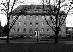 1927 erbautes dreigeschossiges Massivhaus mit Hervorhebung als öffentliches Dienstgebäude in klassizistischer Form. Das staatliche Behördenhaus (Katasteramt) mit neunachsiger Fenstergliederung und mittigem Eingang sowie steilem Walmdach liegt traufständig zur Goldbachstraße. Der Rechteckbau hat zur Bismarckstraße einen zweigeschossigen Anbau. Sandsteinsockel und angedeutete Eckquaderung sind Fassadenschmuck des verputzten ehem. preußischen Hochbauamtes. Reizvolle Eingangstür in barocker Manier. Kulturdenkmal aufgrund künstl., geschichtl. und städtebaul. Bedeutung.