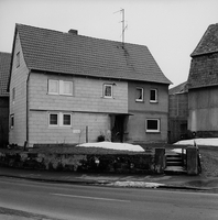 Schräg zur Straße stehendes zweigeschossiges mit Eternitplatten verkleidetes Fachwerkwohnhaus in der Struktur des 19. Jh., vormals mit dazugehöriger - heute niedergelegter - Scheune. Nach Freilegung des Fachwerkes zu beurteilen, ob, wie vermutet, wertvolles Fachwerk verborgen ist. Sehr reizvolle Lage, da höher liegend als der Straßenverlauf in der Nähe der alten Dorfkirche im Ortskern der Gesamtanlage. Das Wohnhaus ist aufgrund geschichtlicher Bedeutung ein Kulturdenkmal.