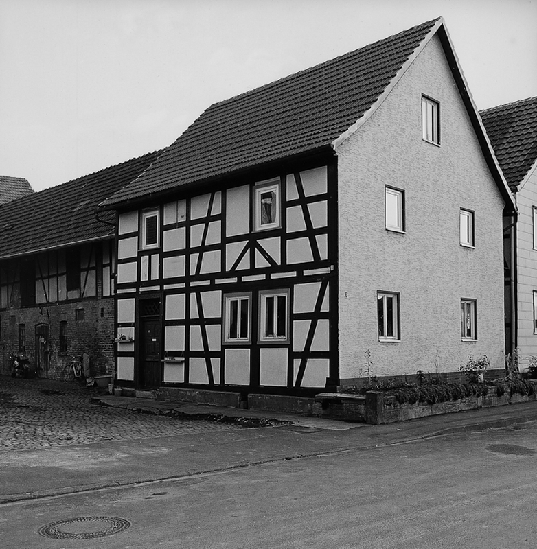 Winkelhofanlage mit einem traufständigen zweigeschossigen Wohnhaus des 17. Jh. mit sehr lebhaftem Fachwerk durch die Form der „Wilden Mannfigur" an Bund- und Eckständern. Das Haus wurde vor ca. 150 Jahren von einer Ortschaft aus Thüringen nach Niederdünzebach versetzt, Das Wohnhaus ist mit reichhaltiger Verzierung im Schwellenkranz durch gedrehtes Taubandmotiv und großen Zahnschnitt versehen. Diese Schnitzerei befindet sich auch unter der Traufe. Die zum Hof stehende Giebelseite ist massiv mit schlichten Lisenen und den geschossunterteilenden Bändern gegliedert. Diese Fassade verleiht dem Haus einen leichten städtischen Eindruck. Die Anbauten als Stall und Scheunen sind im Erdgeschoss massiv. Der giebelständige Anbau ist mit einem Zwerchhaus versehen und die traufseitige Scheune mit großem Dachüberstand. Die Scheune geht über in die der gegenüberliegenden Hofanlage mit der Haus-Nr. 4, die mit einem kleineren giebelständigen Fachwerkwohnhaus des 19. Jh. dessen Giebelwand verputzt ist, eine U-förmige Hofanlage mit gut erhaltener Aufteilung der nach Funktionen getrennten Bereiche darstellt. Kulturdenkmal aufgrund geschichtlicher, künstlerischer und städtebaulicher Bedeutung.
