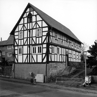 Das repräsentative zweigeschossige giebelständige Fachwerkwohnhaus auf hohem Sandsteinsockel mit Freitreppe sieht der Kirche schräg gegenüber. Es hat lebhaftes Fachwerk mit Mannfiguren der jüngeren Form an Bund und Eckständern. Die Eckständer und Winkelhölzer sind mit Schnitzwerk verziert, auffallend sind die Dreifachverzapfungen der Dreiviertelstreben am Eckständer. Brüstungsbereiche der Schautraufseite sind mit thüringischem Leitermotiv und profiliertem Schwellenkranz geziert. Inschrift der Schwelle „Befiehl dem Herrn deine Wege, und hoffe auf ihn er wirds wohl machen und wird deine Gerechtigkeit hervorbringen wie das Licht und dein Recht wie den Mittag Psalm 37 von 5.6" und zwischen Tür und Oberlicht „Dies Haus ist erbaut worden von Johann Werner Maurer und dessen Ehefrau". Der städtisch wirkende lang gestreckte Fachwerkrähmbau des späten 18. Jh. ist Kulturdenkmal aufgrund seiner künstlerischen und geschichtlichen Bedeutung.