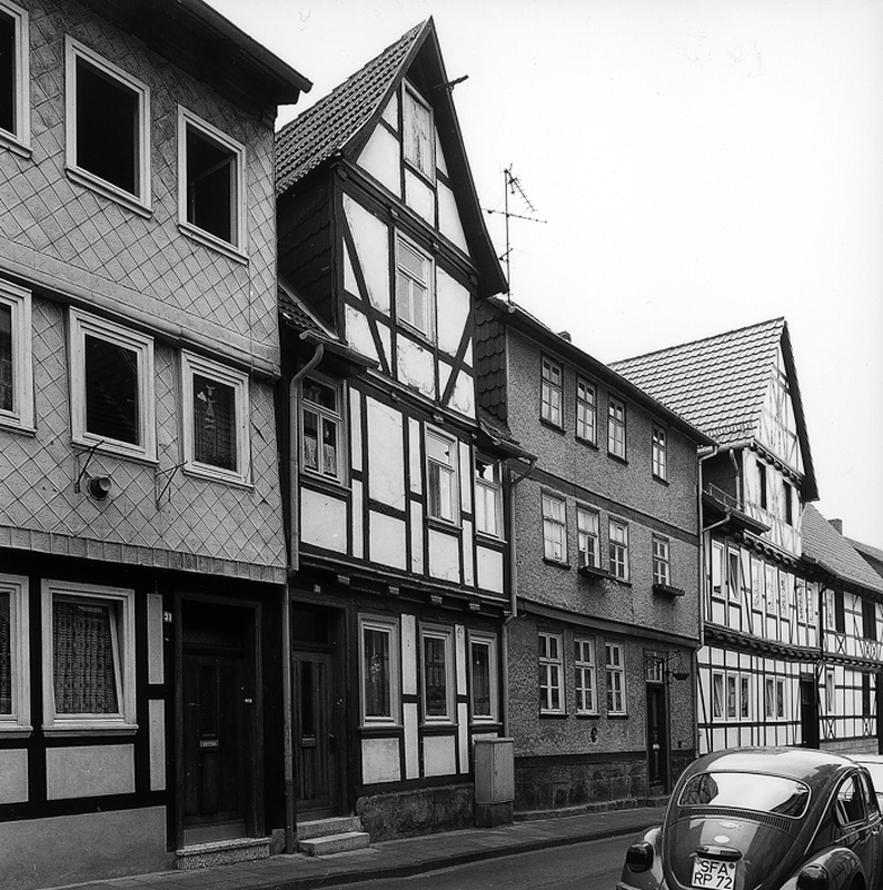 Bescheidenes Fachwerkwohnhaus aus dem ersten Drittel des 18. Jhs. mit klar aufgebauten Gerüstsystem ohne ausgebildete Strebefiguren. Den Bereich des Geschossüberstandes hebt als bemerkenswerte Schmuckform an Füllhölzern und der Schwelle ein dicker Taustab hervor. Das Zwerchhaus des Gebäudes nimmt nahezu die gesamte Dachbreite ein.