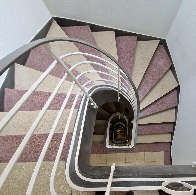 Bemerkenswert ist die ebenso funktionale wie großzügige Grundrissstruktur der fünf Büroetagen ab dem zweiten Obergeschoss, die um einen inneren Erschließungskern mit Treppenhaus, Aufzugsschacht sowie zwei durchgehende Lichthöfe mit anschließenden Nasszellen gruppiert und ansonsten stützenfrei konstruiert sind, was eine annähernd beliebige Unterteilbarkeit ermöglicht. Das elegant geschwungene Haupttreppenhaus mit farbig alternierenden Kunststeinstufen und dem Metallgeländer stammt noch aus der Bauzeit. Auch das äußere Erscheinungsbild ist mit Ausnahme der Fenster und des umgebauten Erdgeschosses weitgehend unverändert erhalten.