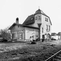 Nordwestlich vor dem Ortskern gelegene Haltestation der 1904 in Betrieb genommenen Nebenstrecke Butzbach-Lich; das schlichte Gebäude trägt die Kennzeichen des handwerklich-traditionalistischen Bauens der Zeit nach 1900. Der Bahnhof dient nicht mehr seinem ursprünglichen Zweck und befindet sich in einem schlecht unterhaltenen Zustand. Trotzdem ist er aufgrund seiner ortsgeschichtlichen Bedeutung und seiner typologischen Verwandtschaft mit dem Bahnhof im benachbarten Gambach (Münzenberg) erhaltenswert.