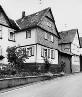 Zweigeschossiges, giebelständiges Fachwerkwohngebäude mit seitlich angrenzendem überdachten Hoftor; das Wohngebäude ist im Erdgeschoß massiv erneuert. Das ungestörte Fachwerkgefüge darüber ist verputzt und verschiefert, es ist vermutlich um 1700 entstanden. Besonders wertvoll ist das jüngere Hoftor von Anfang des 19. Jhs. mit Schnitzereien, die den Pfosten und den Kopfbändern des Sturzes folgen. Erhaltenswert auch die Einfriedung des vor dem Wohnhaus angelegten kleinen Hausgartens.