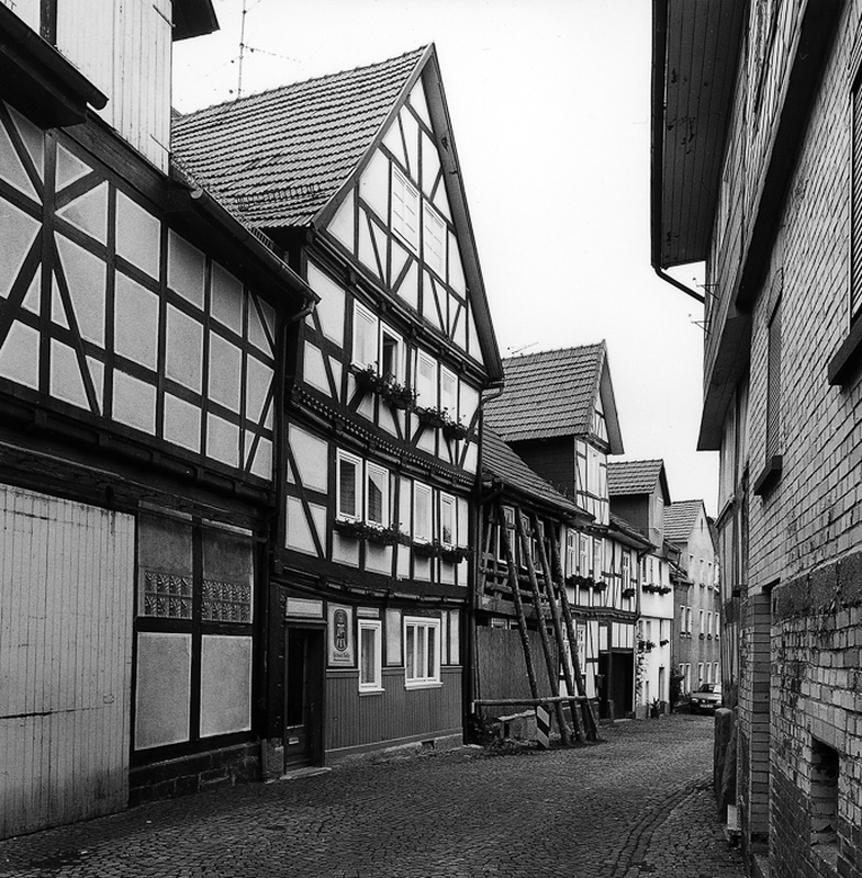 Giebelständig erschlossenes Fachwerkwohnhaus aus der Mitte des 17. Jhs. in drei Geschossen mit einem kräftig ausgebildeten Fachwerkgefüge und reich profiliertem Schwellenbereich. Das Fachwerkgerüst setzt sich aus leicht gebogenen 3/4-Streben an den Eckständern und dazwischen im Brüstungsbereich eingelegten Fußstreben zusammen. Die Füllhölzer zieren große Schiffskehlen mit Rundstab, die Schwelle wird von Zahnschnitten, Taubändern und Wülsten hervorgehoben.