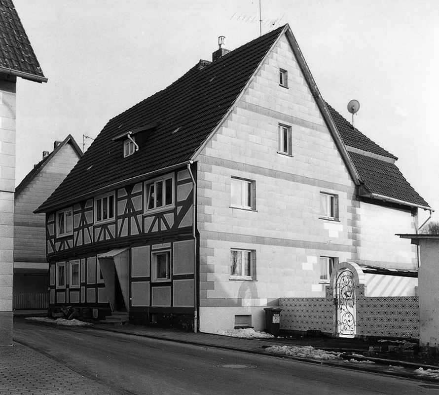 Das traufständig orientierte Fachwerkwohnhaus stammt vermutlich aus dem ersten Drittel des 18. Jhs. Darauf verweist die Fachwerkkonstruktion aus besonders starken Hölzern, die sich im Obergeschoss zu einem Gerüstraster aus Mannfiguren mit Hals- und Brustriegeln zusammenfügen; in den Kopfknaggen herzförmiger Flachschnitzdekor. Im Brüstungsbereich gegenläufige Fußstreben. Stark ausgeprägter Geschossüberstand. Im Untergeschoss jüngeres Fachwerk mit Versprüngen im Bereich der Riegel.