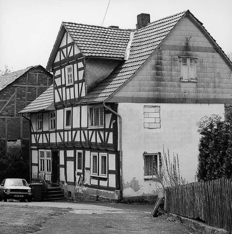 In einer Senke abseits der Straße erhebt sich das Wohnhaus einer ehemaligen Mühle aus dem Jahr 1727. Das gut erhaltene Fachwerkgerüst besteht an der Traufseite aus Mannfiguren mit Hals- und Brustriegeln an den Eck- und Bundständern im Obergeschoss; dazwischen im Brüstungsbereich gegenläufige Fußstreben. Ein ähnliches Fachwerkraster auch im Zwerchhaus. Ein Riegel neben dem Hauseingang trägt die Inschrift mit dem Baudatum.