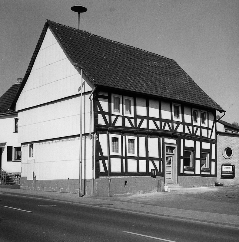 Durch die giebelständige Ausrichtung setzt das Fachwerkwohnhaus in seiner traufständig orientierten Umgebung einen wichtigen städtebaulichen Merkpunkt. Das an der Traufseite einsichtige Fachwerkgefüge erlaubt eine Datierung in die letzten Jahre des 18. Jhs.: die Eckständer werden von Mannfiguren mit Hals- und Brustriegeln in das Fachwerkgerüst eingebunden, den Brüstungsbereich versteifen gegenläufige Fußstreben.