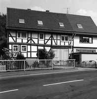 Traufständig erschlossenes Einbaus mit linksseitigem Wohnbereich, rechts Wirtschaftstrakt mit Toreinfahrt. Der bauliche Kern des Wohnhauses datiert in die erste Hälfte des 18. Jhs. Dieses Baudatum wird kenntlich durch die weit ausgreifenden 3/4-Streben mit einfacher Verriegelung an den Eckständern im Obergeschoss; am Bundständer einfache Fußstreben. Die Gruppe ist als Wohn-Wirtschaftsgebäude in historischer Ortsrandlage Kulturdenkmal.