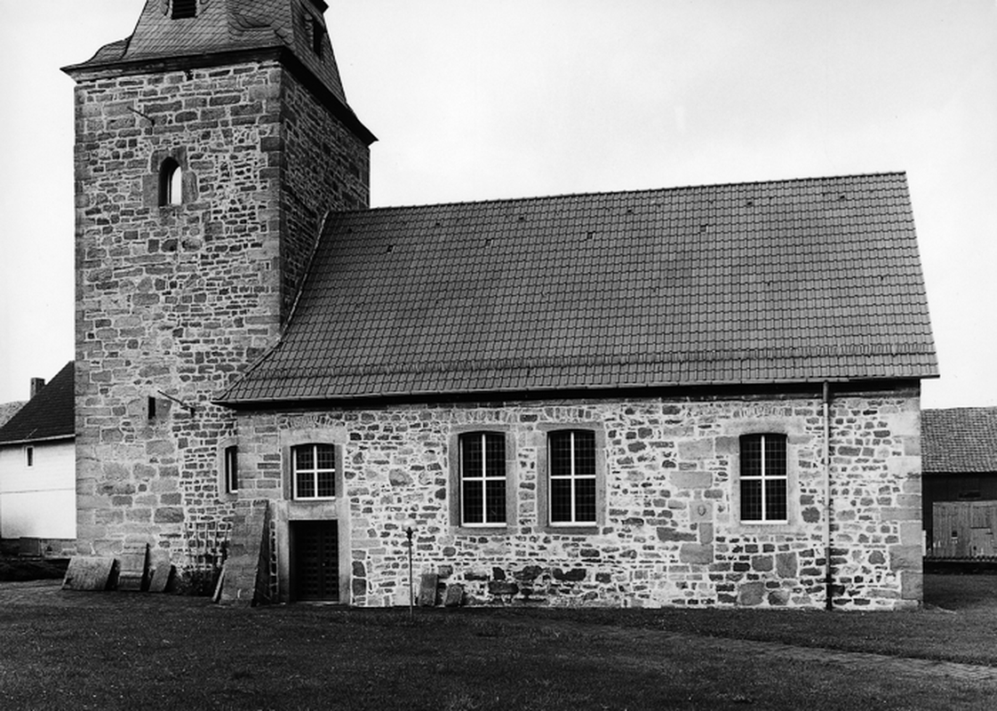 Im Jahr 1759 wurde die mittelalterliche Dorfkirche in Velmeden erweitert: der ehemals eingezogene, rechteckig geschlossene Chor wurde aufgegeben, die Kirche nach Osten verlängert und geradlinig geschlossen. Von diesem Umbau zeugt eine deutliche Baunaht am ehemaligen Chorschluss sowie folgende Bauinschrift über dem Südportal: INSTAVRATA FVIT DOMVS HAEC PASTORE SCHVCHARDO SACRATVR CONVENIENTE DEO OBTEGAT HANC SVA VIS DIVINA NVMINIS VMBRA ADSPIRET SANCTI FLAMINISAVRAGREGIANNOMDCCLIX. Die hohen Langhausfenster sowie die Haube des Turmes sind ebenso Ergebnis dieser Umbaumaßnahmen des späten 18. Jhs. Die älteste Bausubstanz findet sich hingegen im kleinteiligen Mauerwerk der Langhauswände, der Corpus des Wehrturmes ist mit seinem gröberen Steinmaterial deutlich jünger. Die Umbauarbeiten des 18. Jhs. griffen auch im Innenraum, der an der Nord-, West- und Ostwand von einer Empore umschlossen wurde. An der Südwand, einer Langhausseite also, befand sich der Altar, daneben die Kanzel.