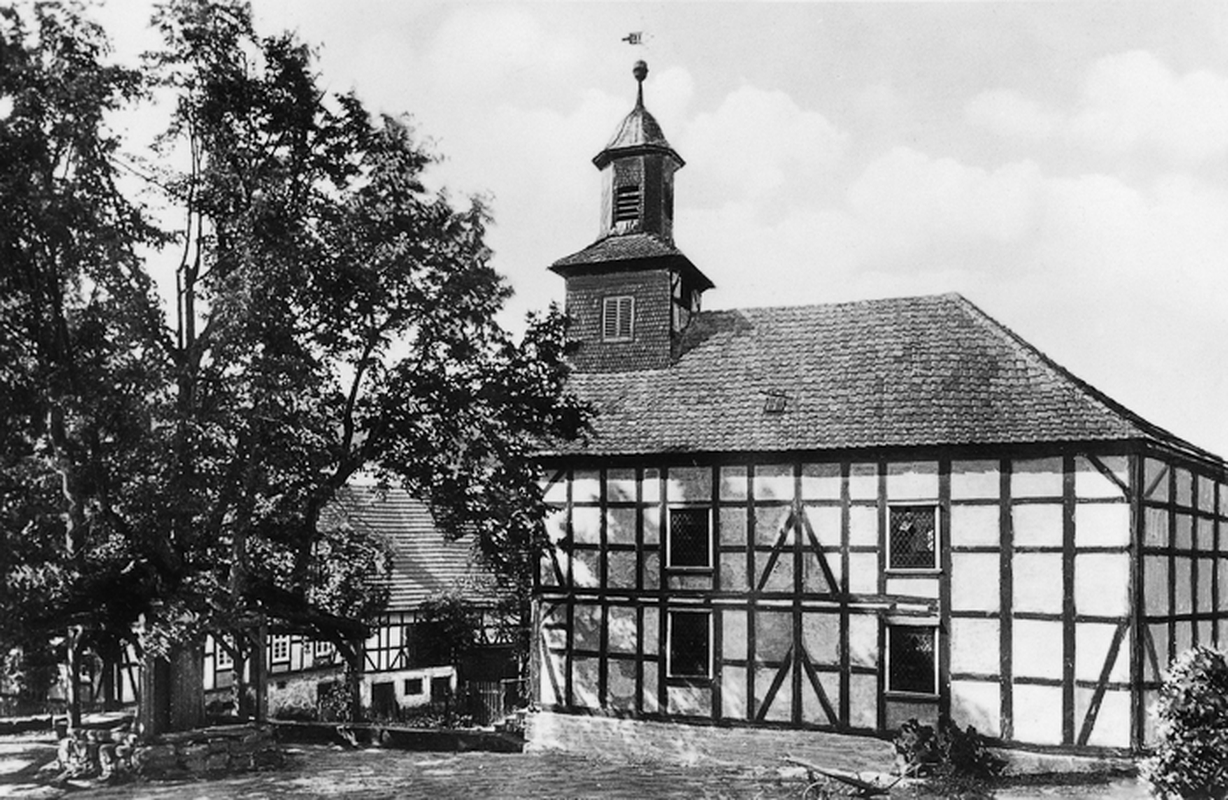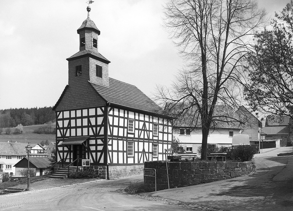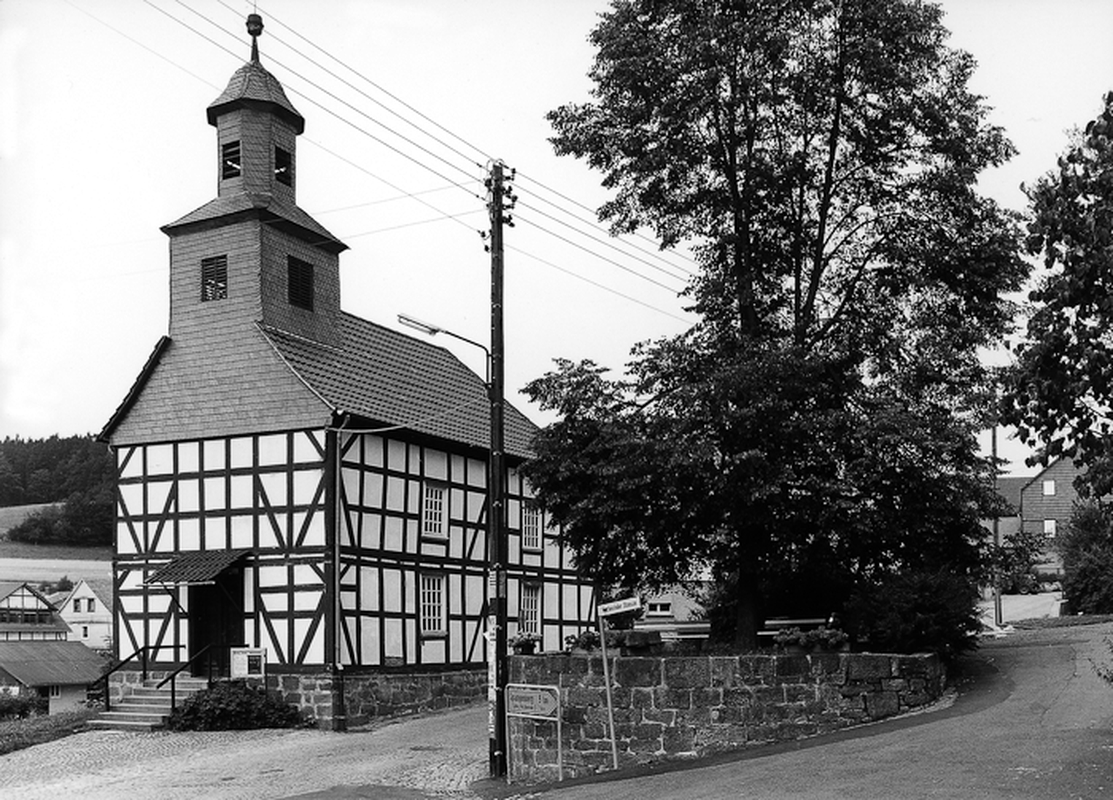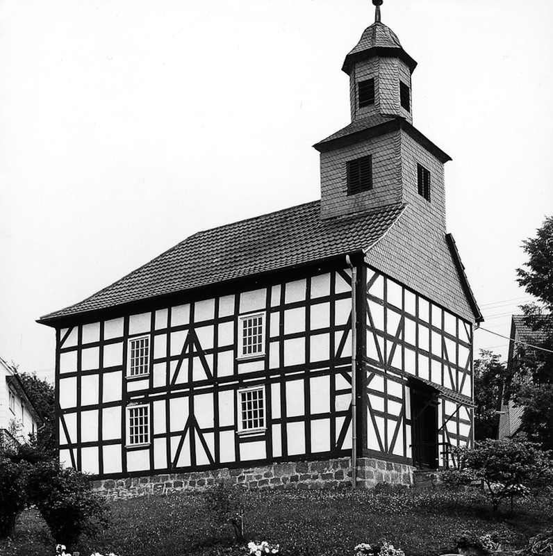 An prominenter Stelle im Ortskern erhebt sich über leicht abschüssigem Baugrund die evangelische Kirche. Es handelt sich um eine Fachwerkkirche über hohem Sandsteinsockel und abschließendem Walmdach. Über dem Eingang erhebt sich ein Fassadenturm mit einem achtseitigen Helm und einer Wetterfahne, die das Baudatum mit 1796 angibt.