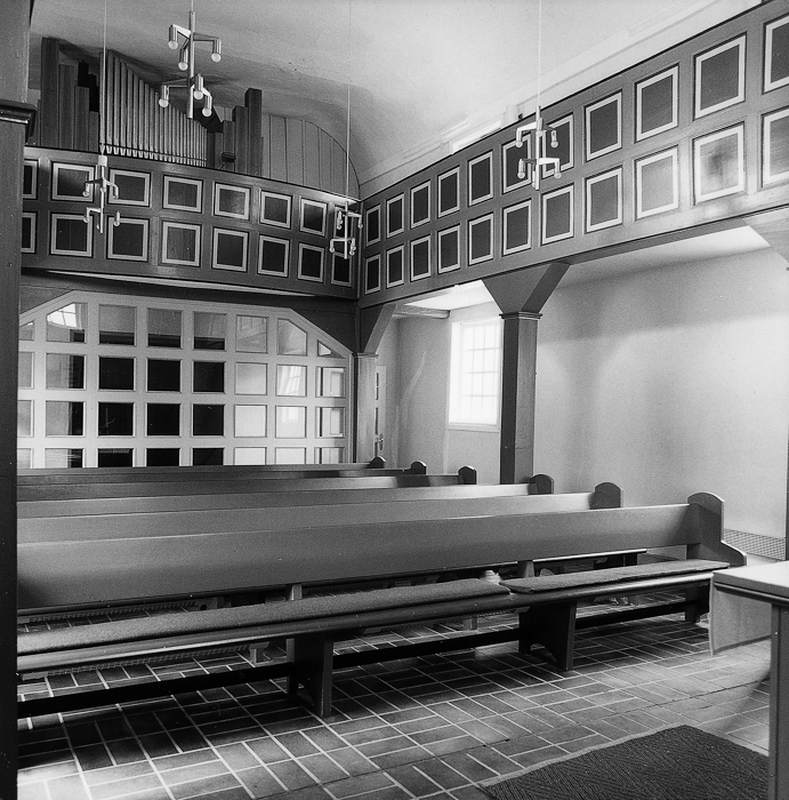 Das Fachwerkgefüge der Kirche besteht aus einem regelmäßigen Gerüstraster, dessen statischer Verband von 3/4-Streben mit zum Teil zusätzlich eingelegten Kopfbändern gesichert wird. Der Fachwerkverband des Gemeinderaumes ist wegen der eingestellten Emporen zweigeschossig, im Chor eingeschossig abgezimmert. Zur Belichtung des Inneren dienen kleinformatig eingeschnittene Rechteckfenster.