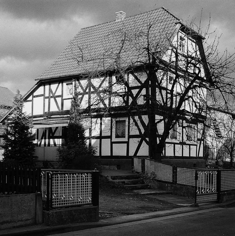 Historisches Tagelöhnerhaus aus dem Beginn des 19. Jhs. mit ortsüblicher Fachwerkkonfiguration, die aus K-Streben an den Eck- und Bundständern besteht. Im Untergeschoss zum Teil erneuertes Fachwerkgerüst. Abgeschlossen wird das Haus von einem Krüppelwalmdach. Als bescheidenes Schmuckmotiv sind den Eckständern Rundstäbe mit schließenden Voluten eingelegt. Benachbart ist ein schützenswertes Backhaus.