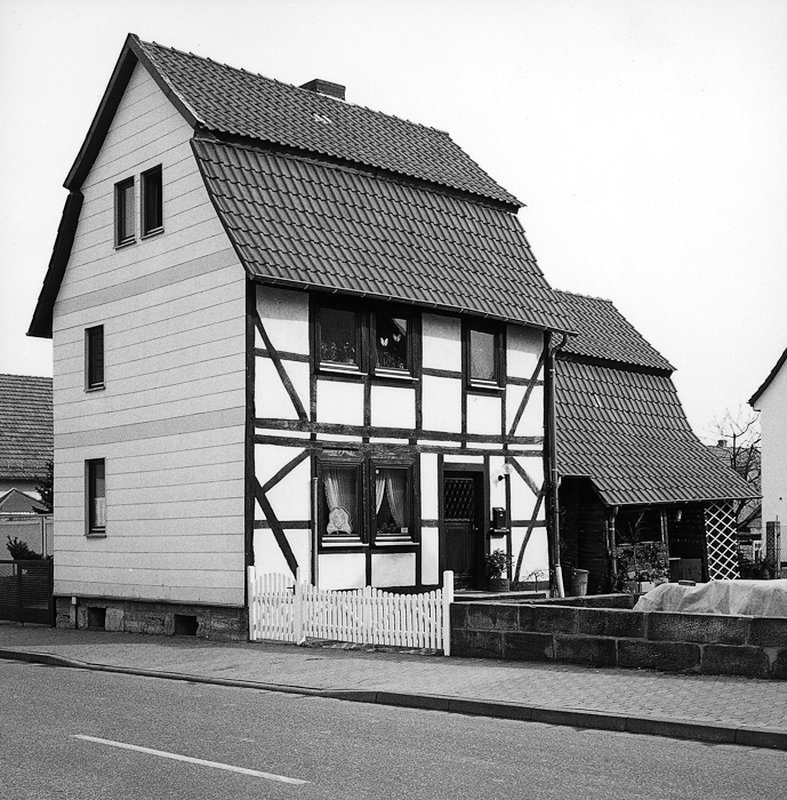 Giebelständiges Wohnhaus in zwei Geschossen mit einer Abzimmerung aus K-Streben im Untergeschoss, Obergeschoss mit einfach verriegelten 3/4-Streben. Besonders auffällig sind die hoch aufsteigenden Stockwerke sowie das abschließende Mansarddach. Angeschlossen ist dem Wohnhaus ein Wirtschaftstrakt, ebenfalls mit einem Mansarddach versehen. Auf Grund der außergewöhnlichen Erscheinungsform kommt dem Gebäude der Status eines Kulturdenkmals zugute.