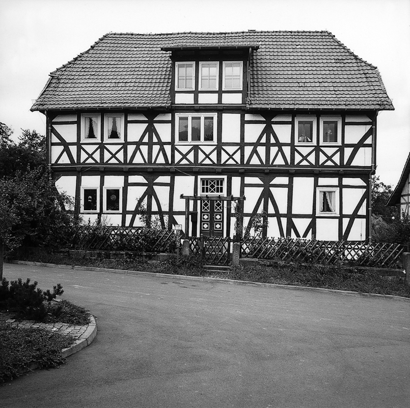 Repräsentatives Fachwerkwohnhaus der ehemals Arnsteinschen Meierei mit einer ausgeprägten Schaufassade. Ausgangspunkt für den Fachwerkverband aus dem frühen 18. Jh. ist die Gerüstkonfiguration einer Mannfigur mit Hals- und Brustriegel, deren leicht gebogene Fußstreben im Brüstungsbereich von einer angezapften Fußstrebe zusätzlich gesichert wird; sie ist Bestandteil des Fachwerkgerüstes in beiden Stockwerken. Die Brüstungsgefache des Obergeschosses werden von einer friesartigen Aneinanderreihung von Andreaskreuzen besetzt. Das Haus verfügt über einen Gewölbekeller mit Zisterne sowie eine gründerzeitliche Tür mit Oberlicht.