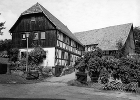 In unmittelbarer Nähe zur Kirche befindet sich ein hakenförmig erschlossener Hof mit einem Wohnhaus, dessen Fachwerkkonfiguration ein ortstypisches Gefüge aus dem frühen 19. Jh. aufweist. Charakteristisch sind die K-Streben an den Eck- und Bundständern in beiden Geschossen; zeittypisch ist auch das abschließende Krüppelwalmdach. Dem Wohnhaus ist im hinteren Bereich eine Scheune mit benachbartem Stall angeschlossen.