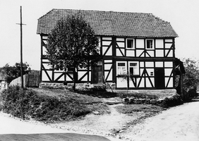 Die Einfahrt in die enge Gasse „Zum Harbach" besetzt ein ehemaliges Forsthaus aus dem ersten Drittel des 18. Jhs. Das Fachwerkgerüst wird von 3/4-Streben mit doppeltem Riegelsystem an den Eckständern sowie konvergierenden Fußstreben an den Bundständern ausgebildet. Das abschließende Krüppelwalmdach wird von Großalmeröder Ziegeln eingedeckt. Auf Grund seiner prägnanten Lage und der gut erhaltenen Bausubstanz ist das Haus Kulturdenkmal.