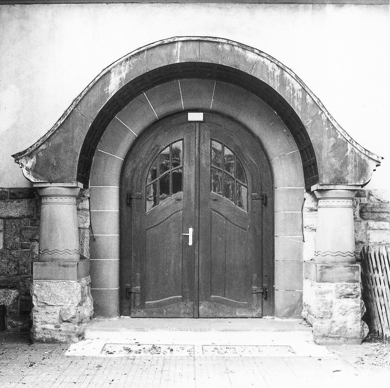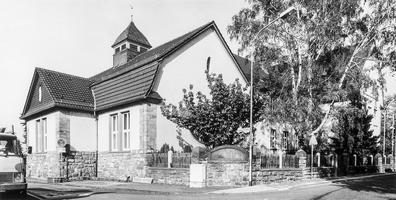 Der Schulbau von 1906 vereint verschiedene Funktionen in einem differenzierten Baukörper: ein Querriegel verbindet den zweigeschossigen Klassentrakt mit der eingeschossigen Turnhalle; einheitliche Mansarddächer fassen die Gebäudeteile zusammen, ebenso der umlaufende Natursteinsockel, der sich in der Einfriedung wiederholt; aus demselben Material die Eckausbildungen der sonst glatt verputzten Fassade. Jugendstilelemente sind sparsam angewandt, etwa in der Gestaltung des Eingangs oder den farbigen Ovalfenstern der Turnhalle. Die Formensprache wendet sich von den vorangegangenen, klassizistisch beeinflussten Traditionen ab und zeigt, wie auch im Wohnhausbau dieser Zeit (Buchschlag), eine Tendenz zu Gestaltungselementen, die sich von ländlich-heimatlichen Vorbildern herleiten, bei gleichzeitigen modernen Einflüssen (Fensterformate). Durch die Auflösung der Baumasse in kleinteiligere Körper passt sich die Schule der städtebaulichen Situation des Wohnviertels an. Gemeinsam mit dem bauzeitlichen Toilettenhaus in der Nordostecke des Grundstücks Kulturdenkmal aus künstlerischen, geschichtlichen und städtebaulichen Gründen.
