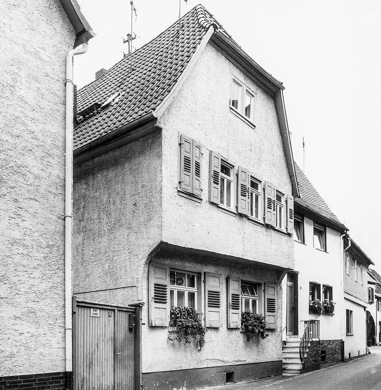 Verputztes Giebelhaus mit Krüppelwalm und auffallendem Geschossvorsprung, wahrscheinlich neben dem Haus Aschaffenburger Straße 91 eines der ältesten Fachwerkhäuser der Stadt. Die Eckstiele des Obergeschosses als Hängepfosten, früher mit abschließendem Knauf, dort eingezapft die äußeren Balken der Längsbalkenlage. First- und zwei Nebensäulen in der Giebelfront sind durchlaufende Ständer, letztere oben nach außen gebogen und auf den Sparren geblattet. Entstehung möglicherweise vor Mitte des 15. Jhs. Kulturdenkmal aus wissenschaftlichen und städtebaulichen Gründen.