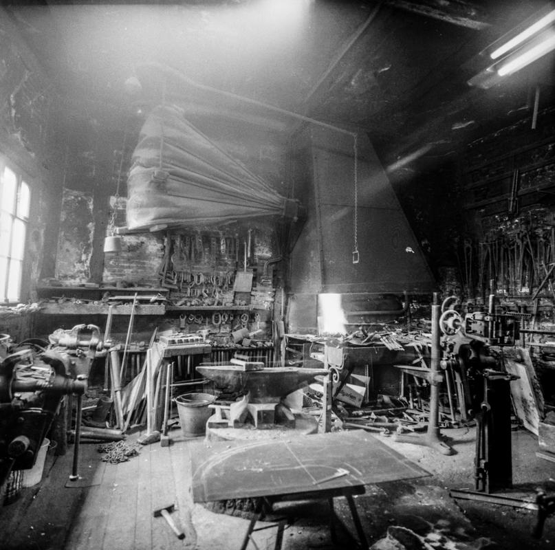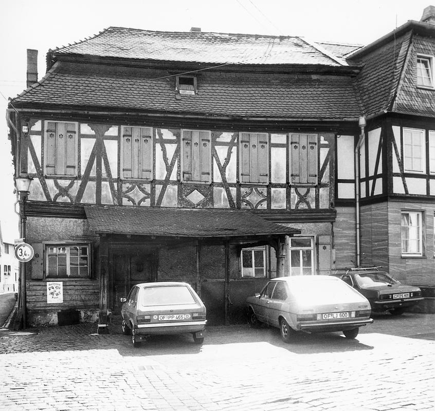 Repräsentativer barocker Eckbau aus der 1. Hälfte des 18. Jhs. mit Mansarddach; das Erdgeschoss verputzt, im Obergeschoss Zierfachwerk von überdurchschnittlicher Qualität mit hohen Mannfiguren und elegant geschwungenen Streben, in der Brüstung Feuerböcke und Rauten. Die Schmiede im Erdgeschoss in seltener Vollständigkeit erhalten, mit teilweise erneuertem Vordach, barocker Holztür mit Kassettierung und Zunftzeichen, kompletter Werkstatt mit Einrichtung. An der Großen Rathausgasse bemerkenswertes überbautes Hoftor mit gekehlten Kopfbändern und Pforte. Einziges original erhaltenes Beispiel eines vorindustriellen Handwerksbetriebs im Kreis, damit von besonderer sozialgeschichtlicher Bedeutung. Kulturdenkmal aus geschichtlichen, künstlerischen, wissenschaftlichen und städtebaulichen Gründen.