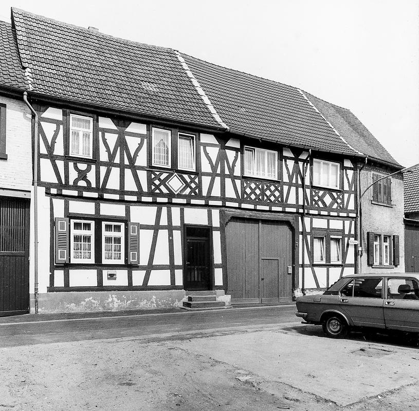 Hervorragendes Beispiel für den in Seligenstadt vertretenen Typus des Ackerbürgerhofes: geschlossene Traufenbebauung der Wohnhäuser mit teils gemeinsamer überbauter Hofeinfahrt. Hier mit besonders dekorativem Fachwerkschmuck um 1700 aus Mannfiguren mit genasten Gegenstreben und aufwendigen Flechtrauten in der Brüstung - dadurch auffälliger Blickfang gegenüber der Einmündung der Kleinen Salzgasse. Kulturdenkmal aus künstlerischen und städtebaulichen Gründen.
