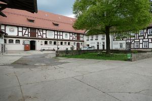 Heute umgeben den Hof das Wohnhaus mit oktogonalem Dacherker und Krüppelwalmdach (erste Hälfte 19. Jahrhundert), zweigeschossige Wohntrakte des 18. Jahrhunderts, im 19. Jahrhundert verändert, 1936 Errichtung des markanten Torhauses. Der Pferdestall mit Erdgeschoss um 1850 mit gusseisernen Säulen und preußischer Kappendecke, Obergeschoss von 1930, weiterhin Stall und Schmiede des 19./20. Jahrhunderts.