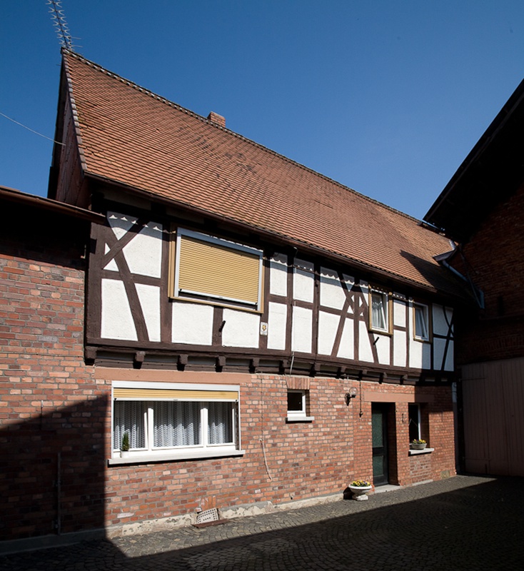 Das im hinteren Hofbereich gelegene, mit der Traufseite zum Hof orientierte Wohnhaus, das im Erdgeschoss durch Ziegelmauerwerk erneuert ist, wahrt im Obergeschoss Reste des ursprünglichen, um 1600 zu datierenden Fachwerks. Es besteht aus unregelmäßig gesetzten Ständern, die durch einen Brustriegel gesichert sind, sowie aus sich überschneidenden, miteinander verblatteten Fuß- und Kopfstreben, die aus leicht geschwungenen Hölzern bestehen. Den unteren Abschluss bildet eine über die gesamte Länge des Gebäudes geführte profilierte Schwelle und die offen liegenden Balkenköpfe. Aufgrund seines hohen Alters sowie wegen des entwicklungsgeschichtlichen Wertes des Strebewerkes ist das Gebäude aus geschichtlichen und künstlerischen Gründen Kulturdenkmal.