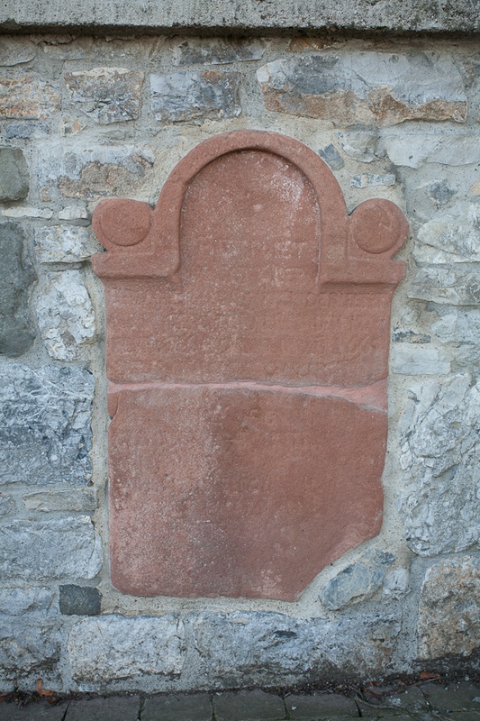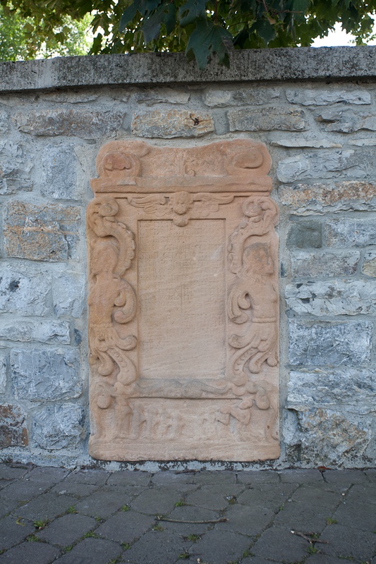 An der Außenseite der Friedhofsmauer sind links neben dem Eingang zwei stark verwitterte Grabsteine des 17. Jahrhunderts aus Sandstein eingelassen deren Inschrift nicht mehr lesbar sind. Sie sind ebenso wie das an der Innenseite dicht neben dem Eingang vermauerte Bruchstück eines weiteren Steines, dessen Datierung (1694) deutlich erkennbar ist, aus geschichtlichen Gründen Kulturdenkmäler.