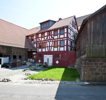 An einem nach Osten führenden Seitenarm des Kirchenplatzes liegt das weit von der Straße zurückgesetzte, den hinteren Hofabschluss bildende Fachwerkwohnhaus. Das Gebäude ist zweigeschossig über einem hohen Sockelgeschoss errichtet und traufständig zur Straße orientiert. Das Fachwerk aus unterschiedlichen Bauzeiten wird an seiner Traufseite durch eine schlichte Hölzeranordnung mit geschosshohen Streben geprägt. Im Obergeschoss bestimmen "Mannfiguren" aus stark dimensionierten Hölzern, die mit gegenläufigen Fußstreben versehen sind, das Bild. Das bauhistorisch interessante Gebäude ist einschließlich des voluminösen Nebengebäudes aus geschichtlichen und städtebaulichen Gründen Kulturdenkmal.