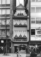 Schmales Rokokowohnhaus um 1760 mit Volutengiebel.