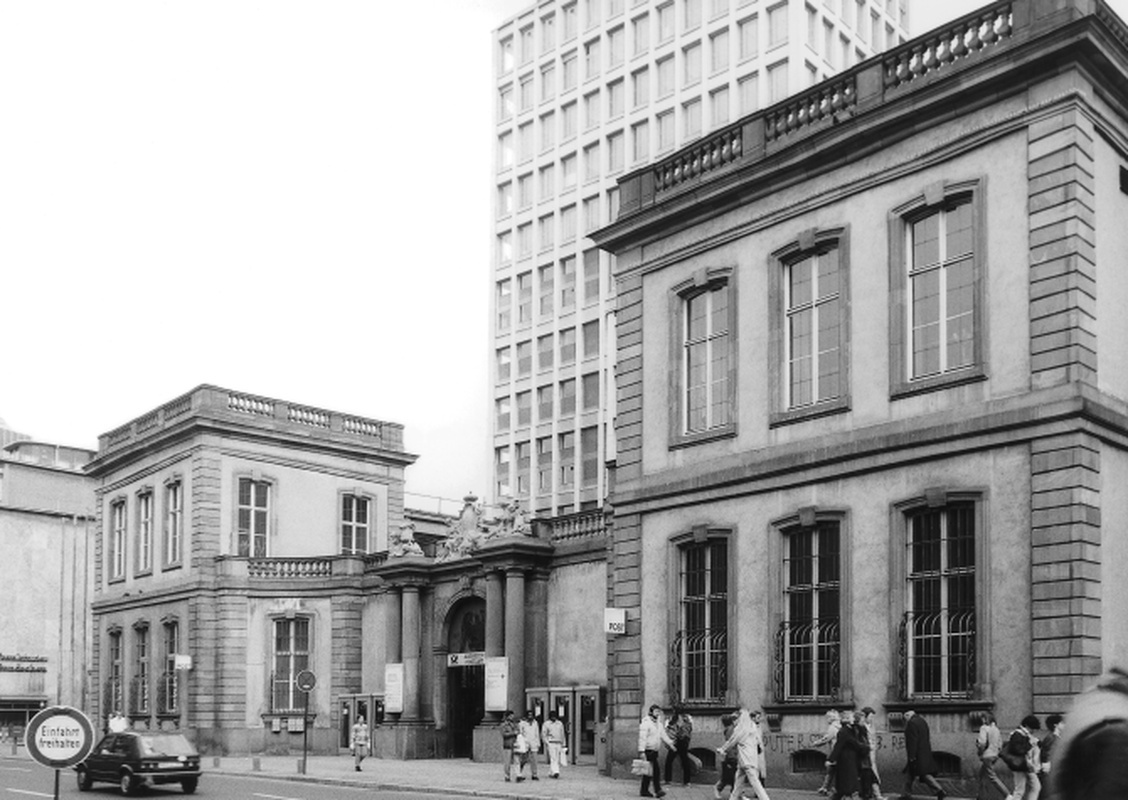 Barockpavillons zuseiten konkaver Toranlage von 1727-34 nach Entwurf von R. de Cotte u. G. d'Hauberat. Rest des aufwendigen Palastes für Fürst A. F. v. Thurn und Taxis; urspr. Mansarddächer zerstört, über Doppelsäulen des Eingangs allegorische Skulpturen und Wappen von P. Egell (Kopien).