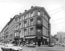 Nobles Mietshaus der Neurenaissance von 1881 mit zweifarbiger Steinfassade; z. T. orig. Balkongitter.