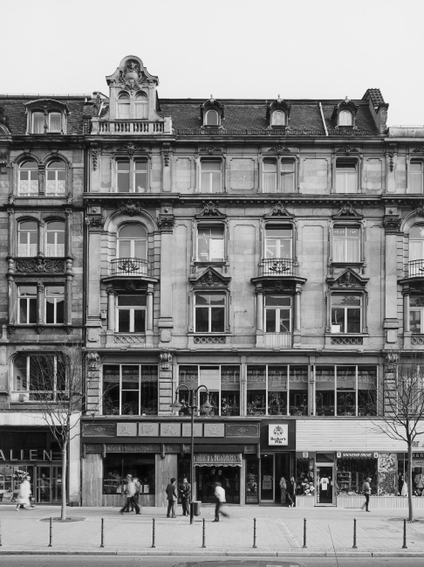 Geschäftshaus von 1895 nach Entwurf von E. Greiss mit neobarocker Fassade aus gelblichem Sandstein.