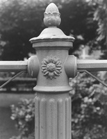 Parkähnliche Gartenanlage von 1860-80 nach Entwürfen der Stadtgärtner S. Rinz und A. Weber mit zeitgenössischer Futtermauer gegen die Dammstraße und Eisengeländer bzw. Treppenanlagen.